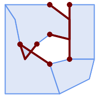 这些条件允许有效的覆盖包含孔(多边形之间的间隙),只要周围的多边形是边缘匹配的。然而,非常窄的间隙通常是不希望的。如果指定 tolerance 参数为非零距离,则形成较窄间隙的边缘也将作为无效返回。